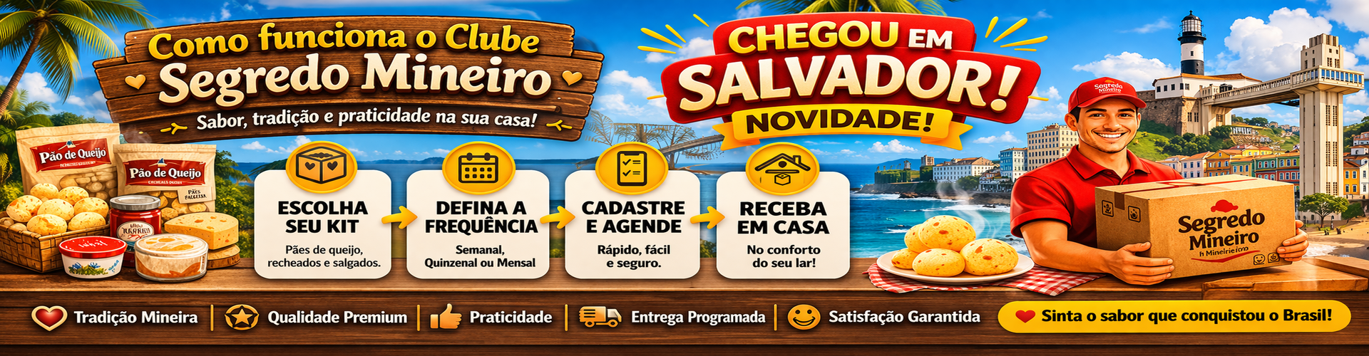 O Clube Segredo Mineiro é perfeito para quem ama praticidade sem abrir mão do sabor e da qualidade. Ao se tornar membro, você recebe seu kit automaticamente, no ritmo que preferir — toda semana, a cada quinzena ou uma vez por mês.